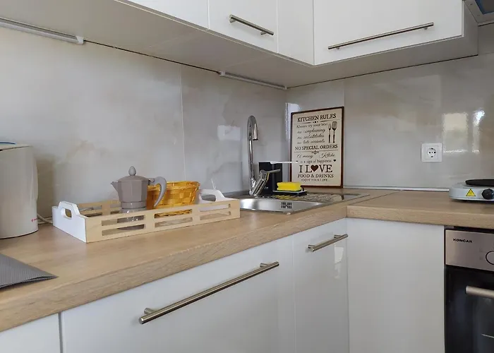 Απολαύστε εξοπλισμένη μικρή κουζίνα που παρέχεται σ' αυτό το κατάλυμα και είναι εξοπλισμένη με ηλεκτρικό βραστήρα, ψυγείο και μαγειρικά σκεύη για την εξυπηρέτησή σας. Το διαμέρισμα απέχει 350 μέτρα από την πλησιέστερη στάση λεωφορείων Put Bokanjca 1 / Barake.